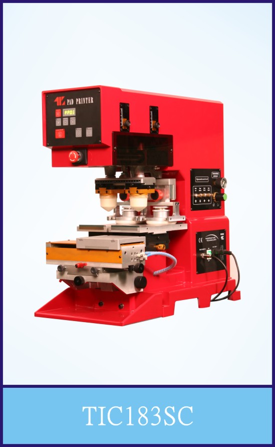 中型雙色密閉式油盅移印機(jī),氣動(dòng)直推式工作臺(tái)